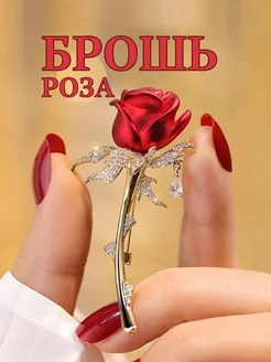 Брошь Красная роза с кристаллами