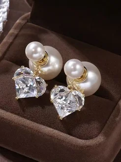 Серьги жемчуг с хрустальным сердцем