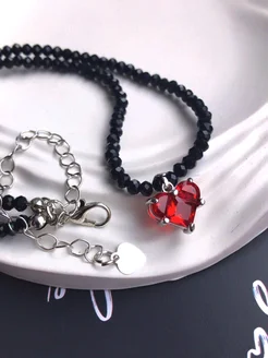 Черный чокер из шпинели с красным сердцем