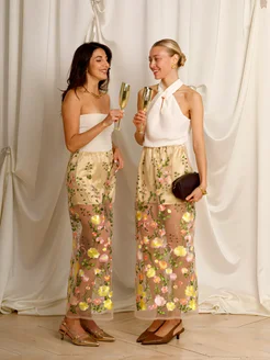 Юбка-сетка длинная с вышивкой