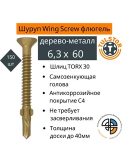 Саморез Wing Screw флюгель, дерево-металл 6,3x60 Антикор