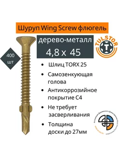 Саморез Wing Screw флюгель, дерево-металл 4,8x45 Антикор