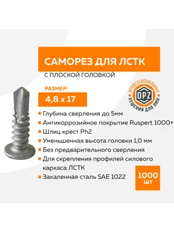 Саморезы DPZ для ЛСТК 4.8x17 упак. 1000 шт