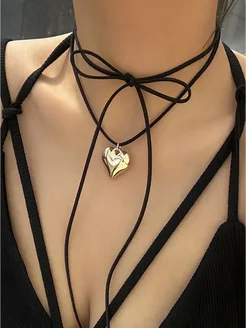 Подвеска бижутерия минимализм на шнурке с сердцем