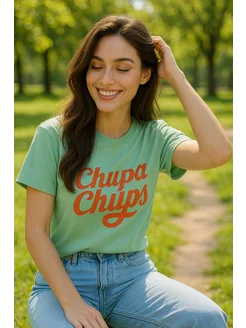 Футболка с принтом "Чупа-Чупс" нежно-зеленая
