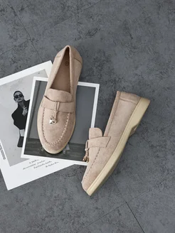 Лоферы замшевые бежевые осенние