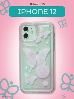 Чехол на iPhone 12 силиконовый с принтом "бабочка"