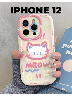Чехол на iPhone 12 силиконовый с принтом "МЯУ"