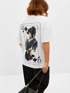 Лонгслив черный женский оверсайз с принтом больших размеров