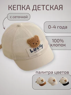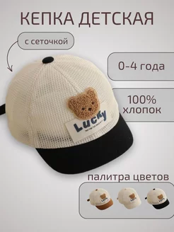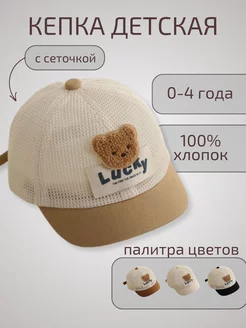 Летняя детская кепка бейсболка для малышей с мишкой с сеткой