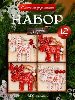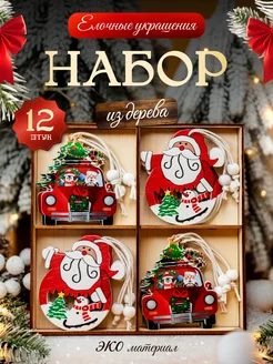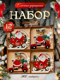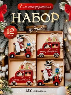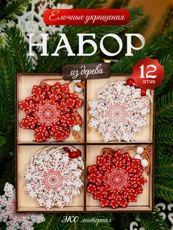 Набор деревянных елочных игрушек Снежинки 12 шт