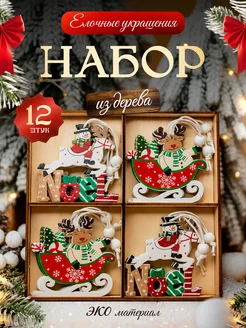 Набор деревянных елочных игрушек Лошадки 12 шт
