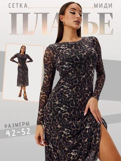 Платье сетка леопардовое новогоднее