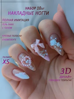 Накладные ногти френч длинный миндаль с 3D дизайном