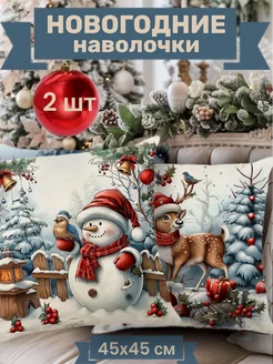 Наволочки новогодние декоративные 45х45 на молнии набор 2шт