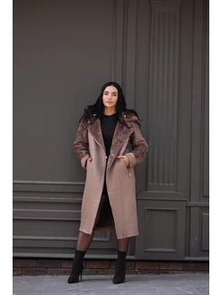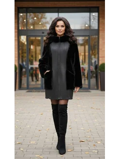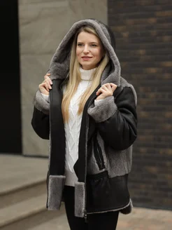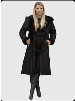 Дубленка зимняя двухсторонняя удлиненная с капюшоном