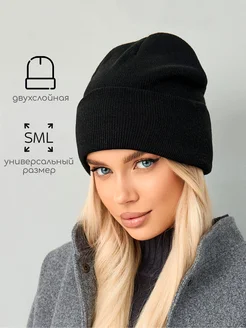 Шапка женская зимняя осенняя бини с отворотом