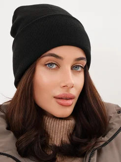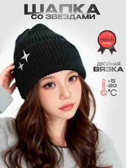 Шапка корейская осенняя вязаная бини с отворотом звезды
