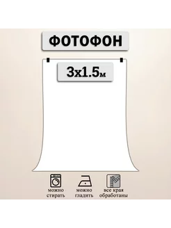Фотофон Белый - 3*1.5м - фон для фото и видео