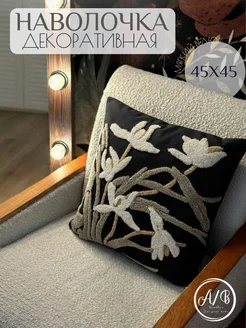Наволочка декоративная 45х45 см "Цветы", черный бархат