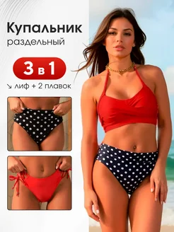 Купальник раздельный 3в1 с высокой посадкой 2 плавок