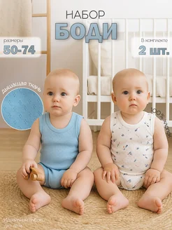 Боди в рубчик для новорожденных без рукавов, комплект 2 шт