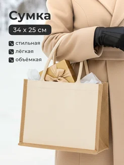 Сумка пакет из джута маленькая подарочная мини шоппер