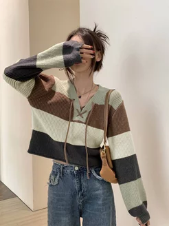 Кофта укороченная свитер топ вязаный корейский y2k