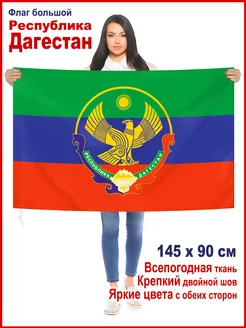 Флаг Дагестана с гербом, большой, 145 х 90 см