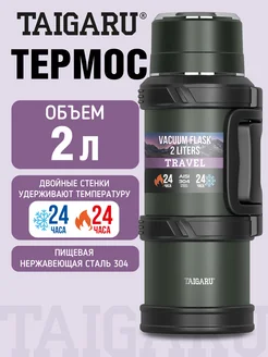 Термос для чая кофе 2л широкое горло 2 кружки походный набор