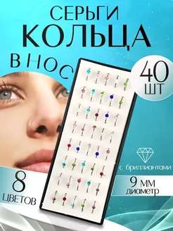 Серьги гвоздики в уши из медицинской стали 12 пар