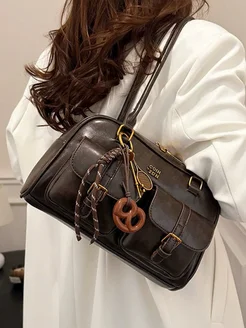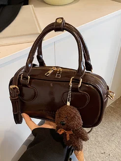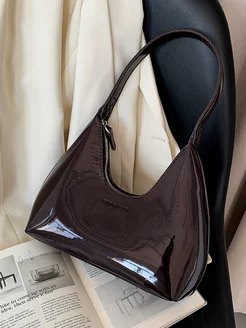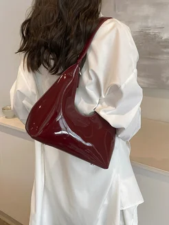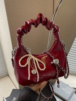 Сумка бордовая маленькая лаковая через плечо с обвесом