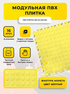 Модульная плитка ПВХ 25 х 25 см Монетка, желтый