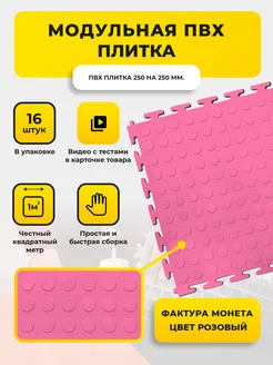 Модульная плитка ПВХ 25 х 25 см Монетка, розовый
