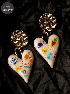 серьги сердца большие