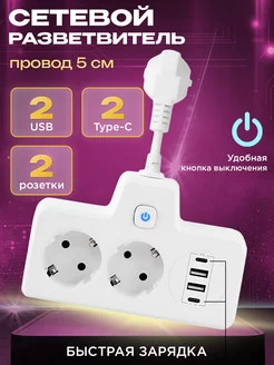 Сетевой фильтр с 2 розетками + 2 USB + 2 Type-C (Белый)