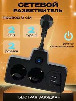 Сетевой фильтр с 2 розетками + 2 USB + 2 Type-C (Черный)