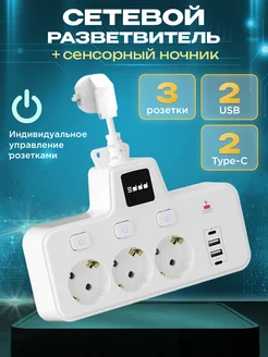 Сетевой фильтр с 3 розетками + 2 USB + 2 Type-C (Белый)