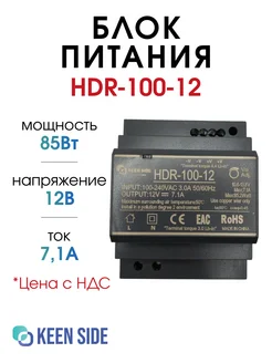 HDR-100-12, блок питания на DIN рейку 12В 7.1А 85Вт (KS)