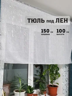 Тюль на кухню короткая 150х100 под лен