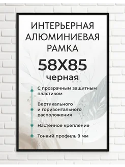 Фоторамка металлическая, размер 58х85 см, цвет черный