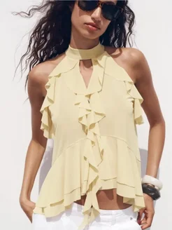 Летний топ вечерний с рюшами и воланами
