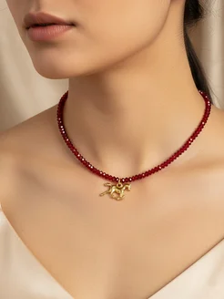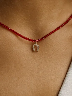 Чокер на шею из натуральной шпинели с подковой 2026,красный