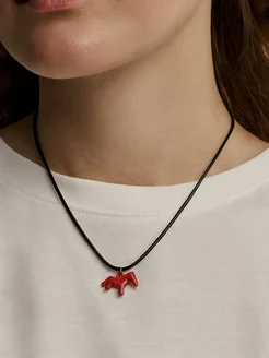 Чокер на шнурке с красной подвеской лошадь 2026, колье