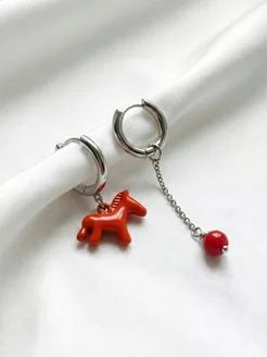Серьги-конго с подвеской красная«Лошадь»— Талисман 2026 года