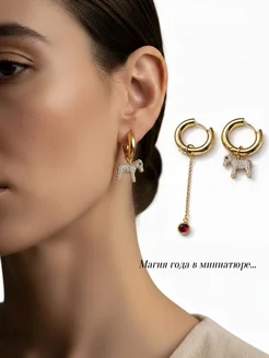 Серьги-конго с подвеской «Лошадь» — Талисман 2026 года