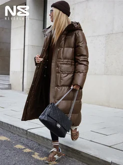 Пуховик зимний длинный с капюшоном