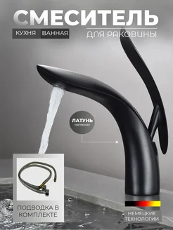 Смеситель для раковины в ванную черный матовый