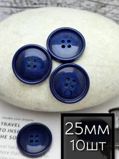 Пуговицы большие для рукоделия и одежды 25 мм синие 10 штук