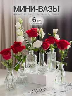 Ваза для цветов и сухоцветов маленькая стеклянная, набор 6шт